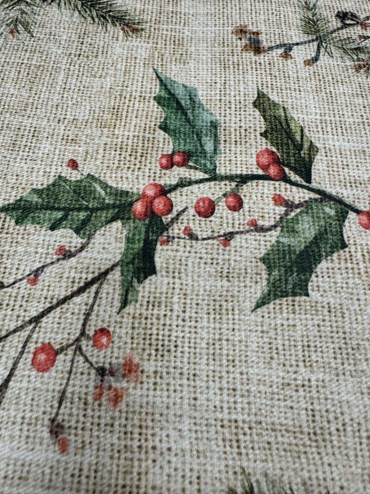 Eleva tu mesa a un nuevo nivel con nuestro mantel anti manchas Viscum, hecho en 100% algodón.  Con tres capas de protección, acabado con dobladillo, este diseño navideño es elegante y útil a partes iguales. Ideal para manteles, el mantel anti manchas es una tela de una calidad parecida al Hule, pero esta permite limpiarse en la lavadora.