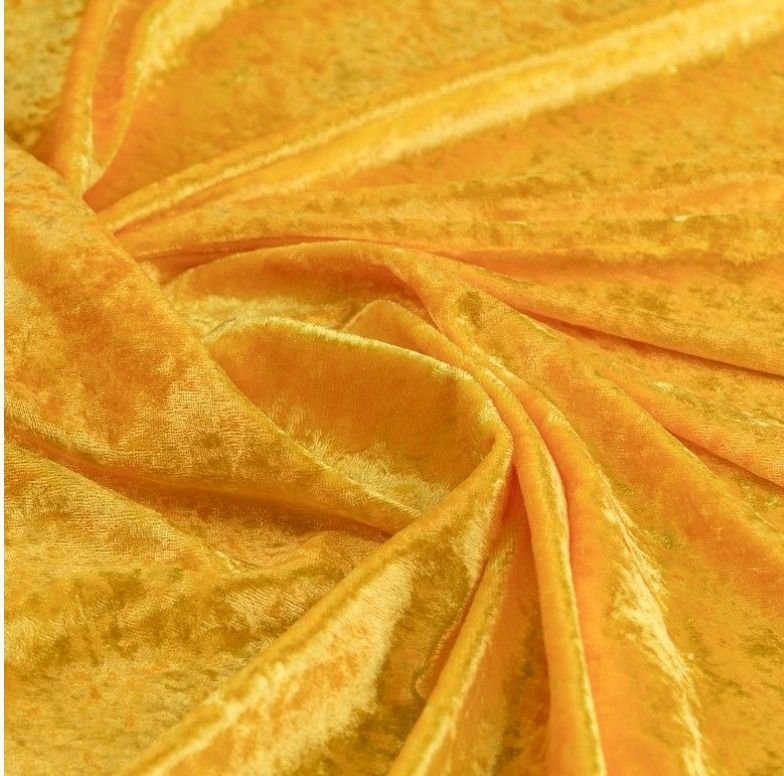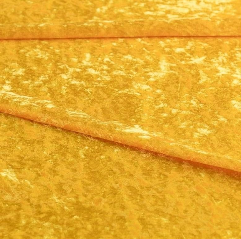 Tela terciopelo martelé de color amarillo. Tela de terciopelo martelé brillante y con un efecto de aguas en base elástica, opaca, con peso y acabado suave en colores llamativos.