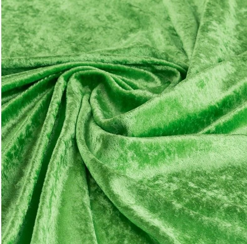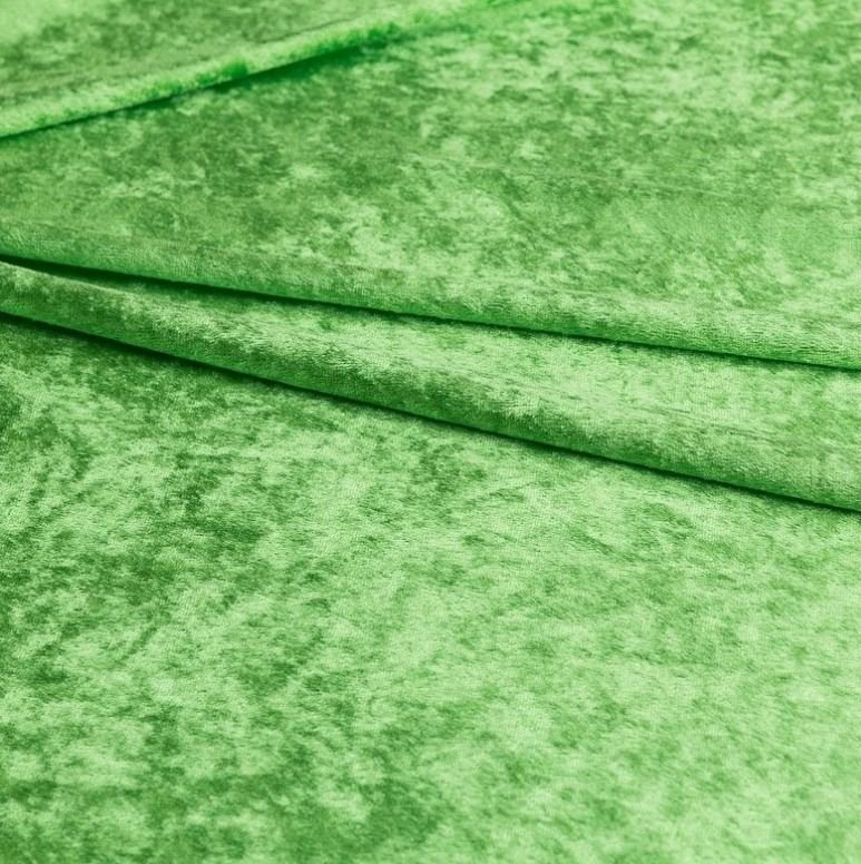 Tela terciopelo martelé de color verde claro. Tela de terciopelo martelé brillante y con un efecto de aguas en base elástica, opaca, con peso y acabado suave en colores llamativos.