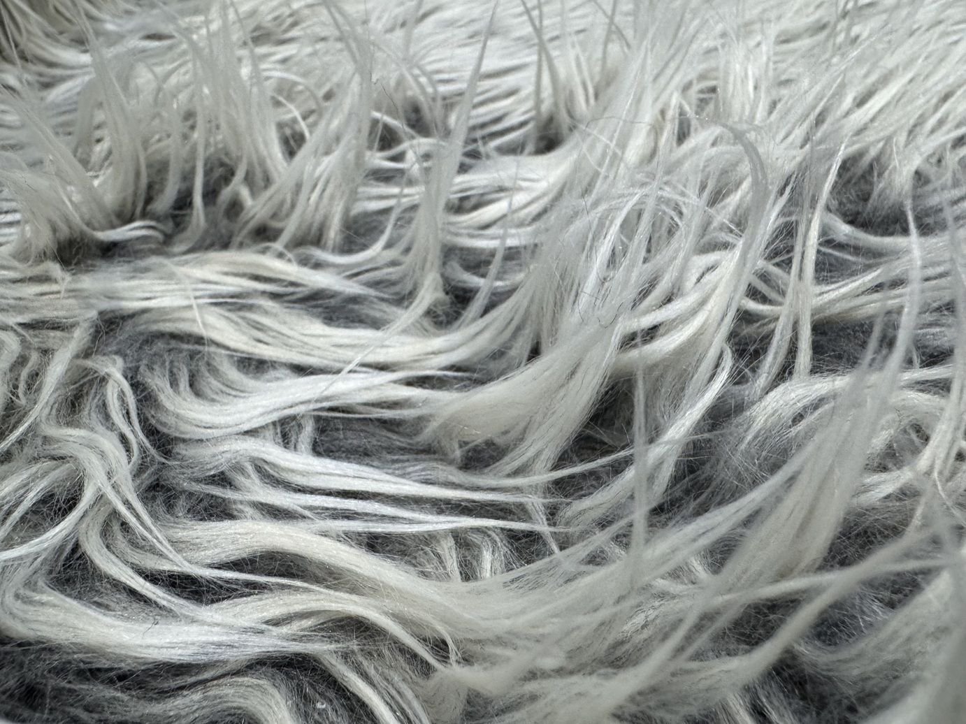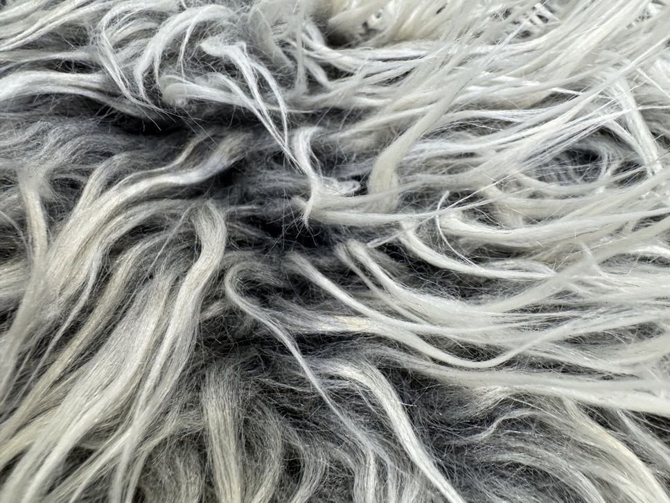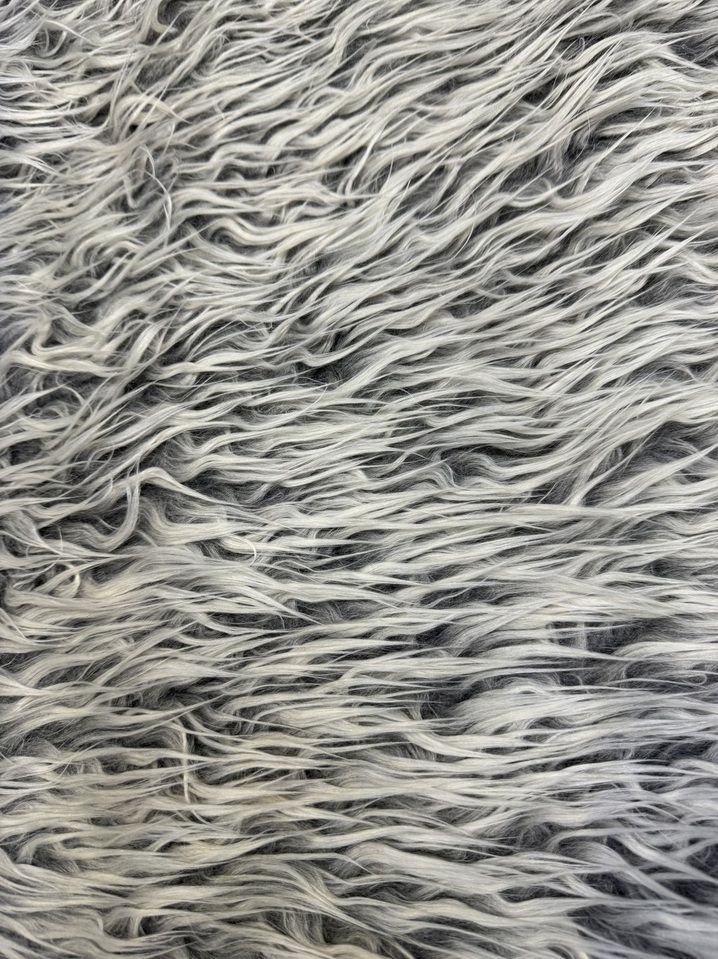 Tela de pelo largo sintético para disfraces de carnaval de color natural y gris. Pelo fantasía en imitación al animal de color vivo y original, con cuerpo, peso y totalmente opaco, de un tacto muy agradable y fino.