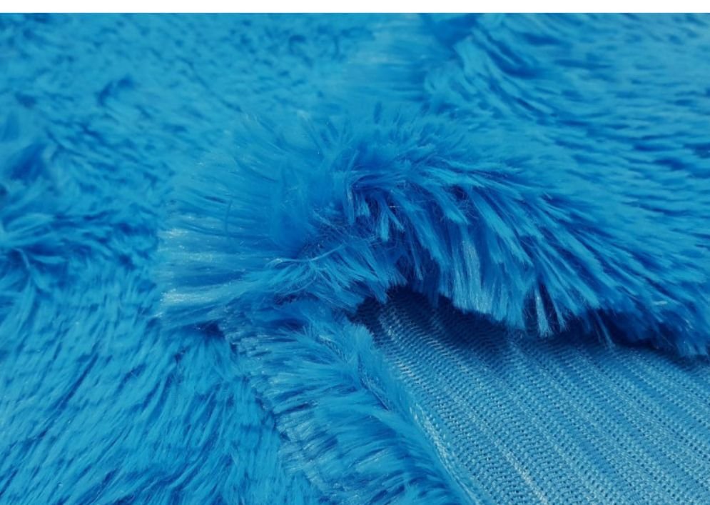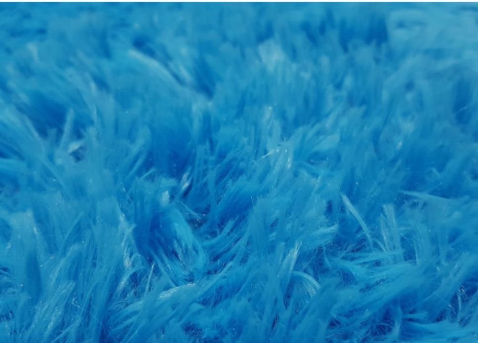 Tela de pelo largo sintético para disfraces de carnaval de color azul. Pelo fantasía en imitación al animal de color vivo y original, con cuerpo, peso y totalmente opaco, de un tacto muy agradable y fino. Tela ideal para carnaval.