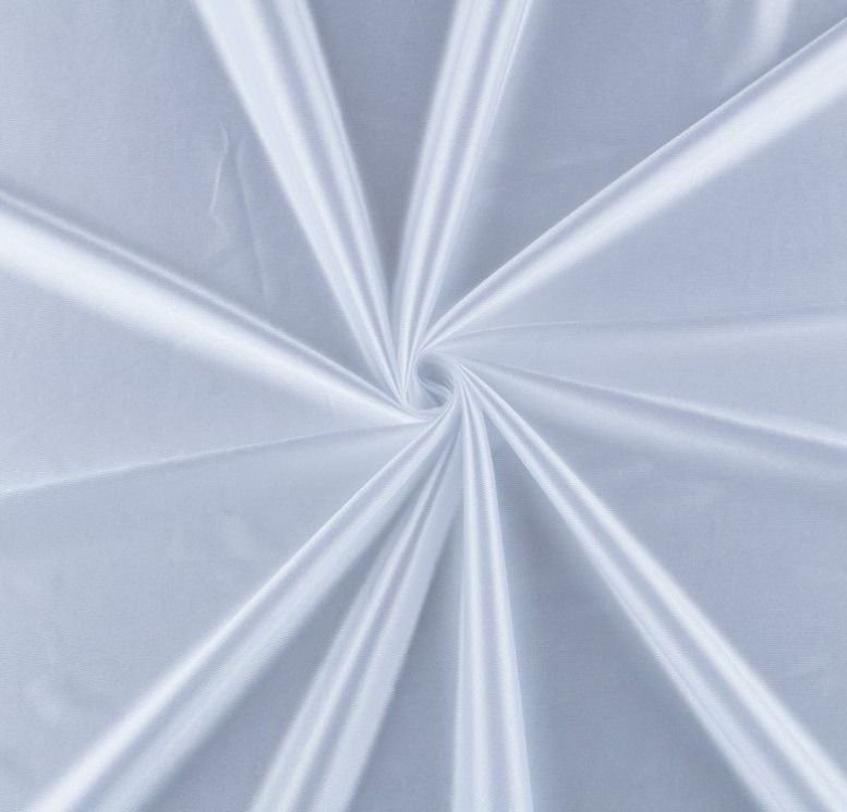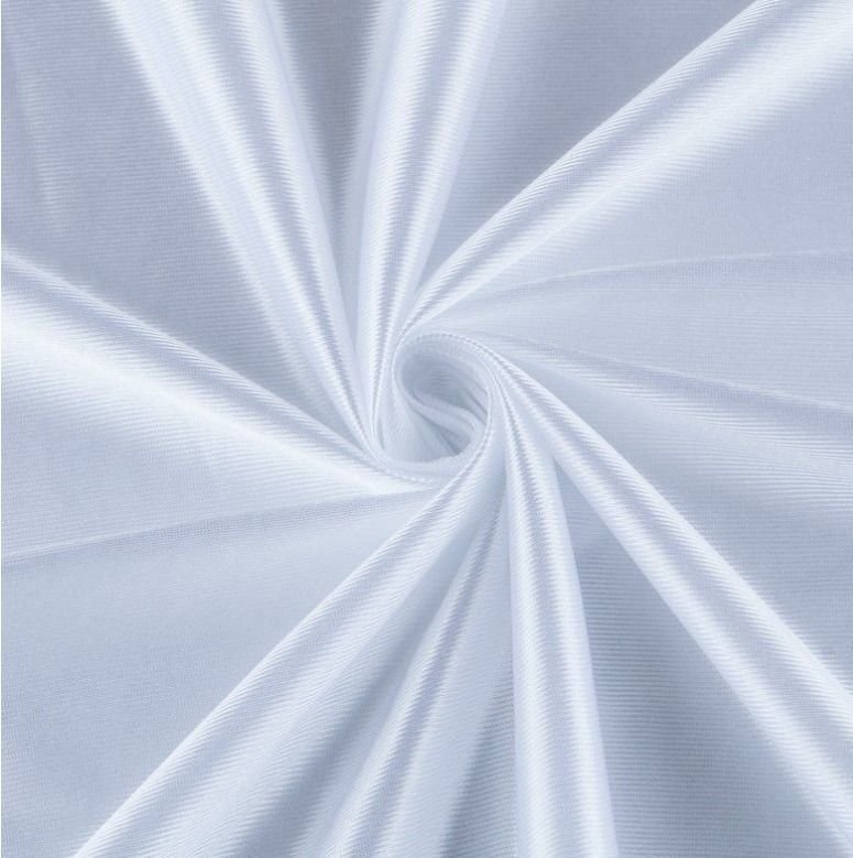 Tela de rasete de color blanco, opaca, ligera y poco cuerpo. Tela de color vistoso y llamativo perfecta para la confección de disfraces y para la decoración.