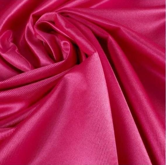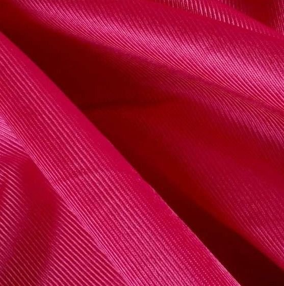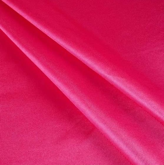 Tela de rasete de color rosa fucsia brillante, opaca, ligera y poco cuerpo. Tela de color vistoso y llamativo perfecta para la confección de disfraces y para la decoración.