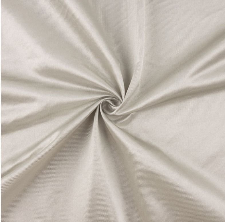Tela de rasete de color plata, opaca, ligera y poco cuerpo. Tela de color vistoso y llamativo perfecta para la confección de disfraces y para la decoración.