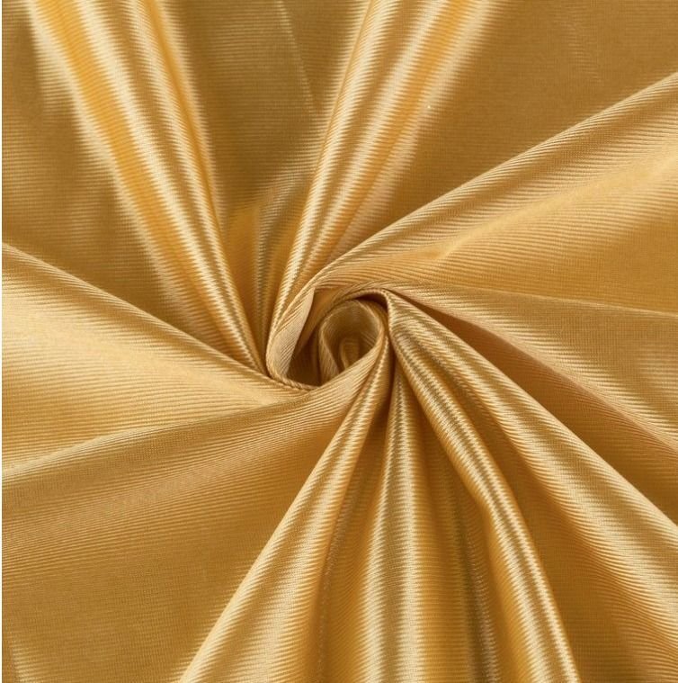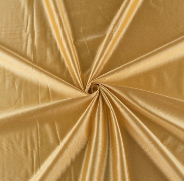 Tela de rasete de color dorado, opaca, ligera y poco cuerpo. Tela de color vistoso y llamativo perfecta para la confección de disfraces y para la decoración.