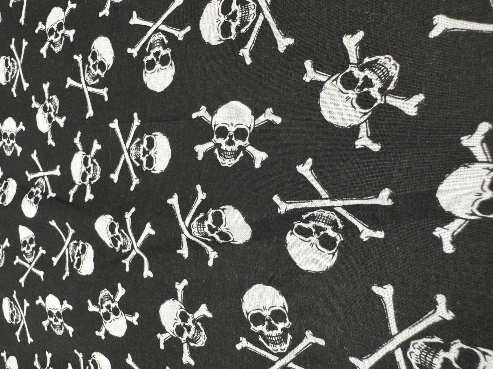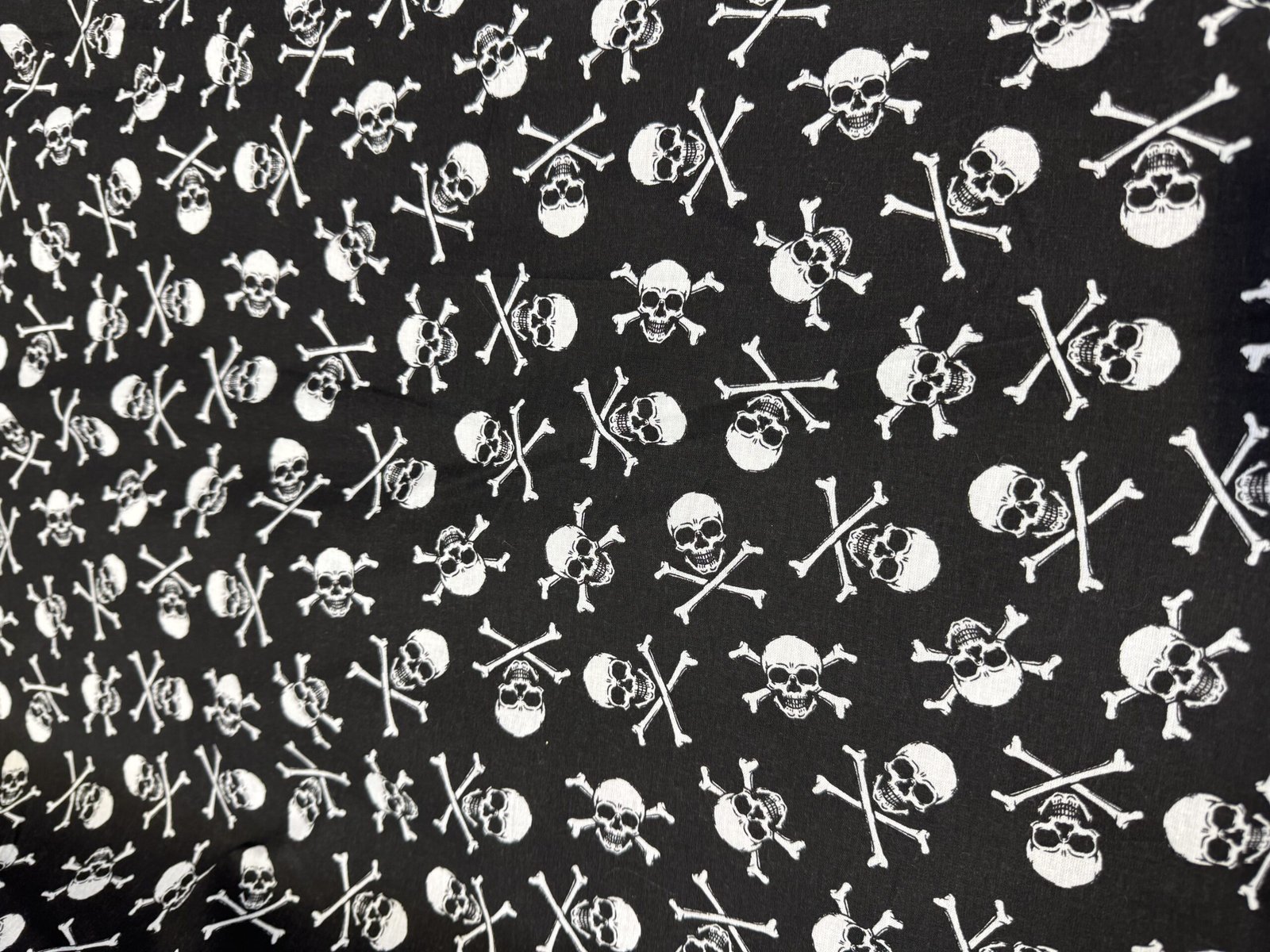 Tela de popelín de algodón con estampado digital de dibujos “terroríficos” característicos de Halloween, un estampado con leve sombreado para un efecto 3D vivo en multicolores.