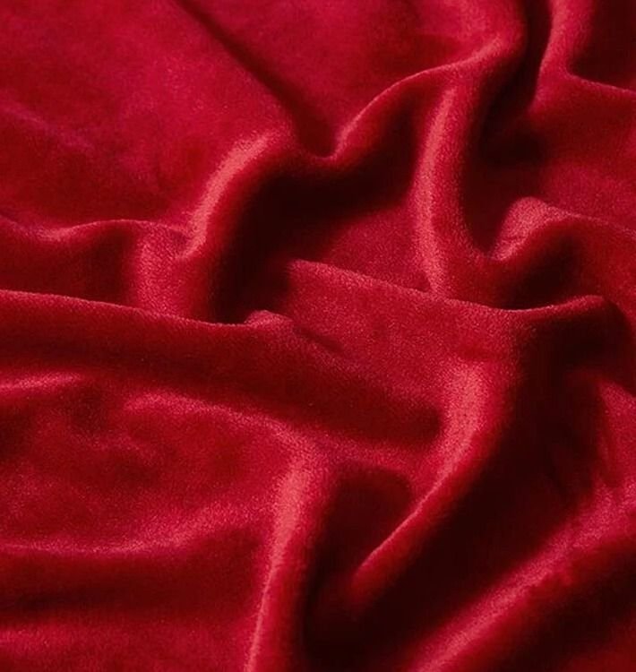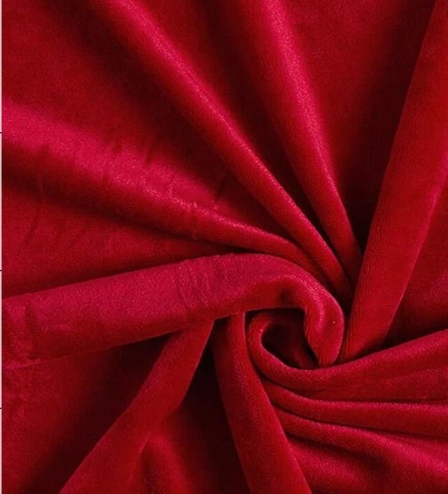 Tela de terciopelo poliéster de color rojo con caída, de tacto suave y agradable. Tejido a base de fibras de poliéster que aumentan su durabilidad y de fácil mantenimiento y lavado pues no se arruga fácilmente. Recomendado para moda de noche y festiva, Blazer, Tops, Pantalones, Faldas, Vestidos.