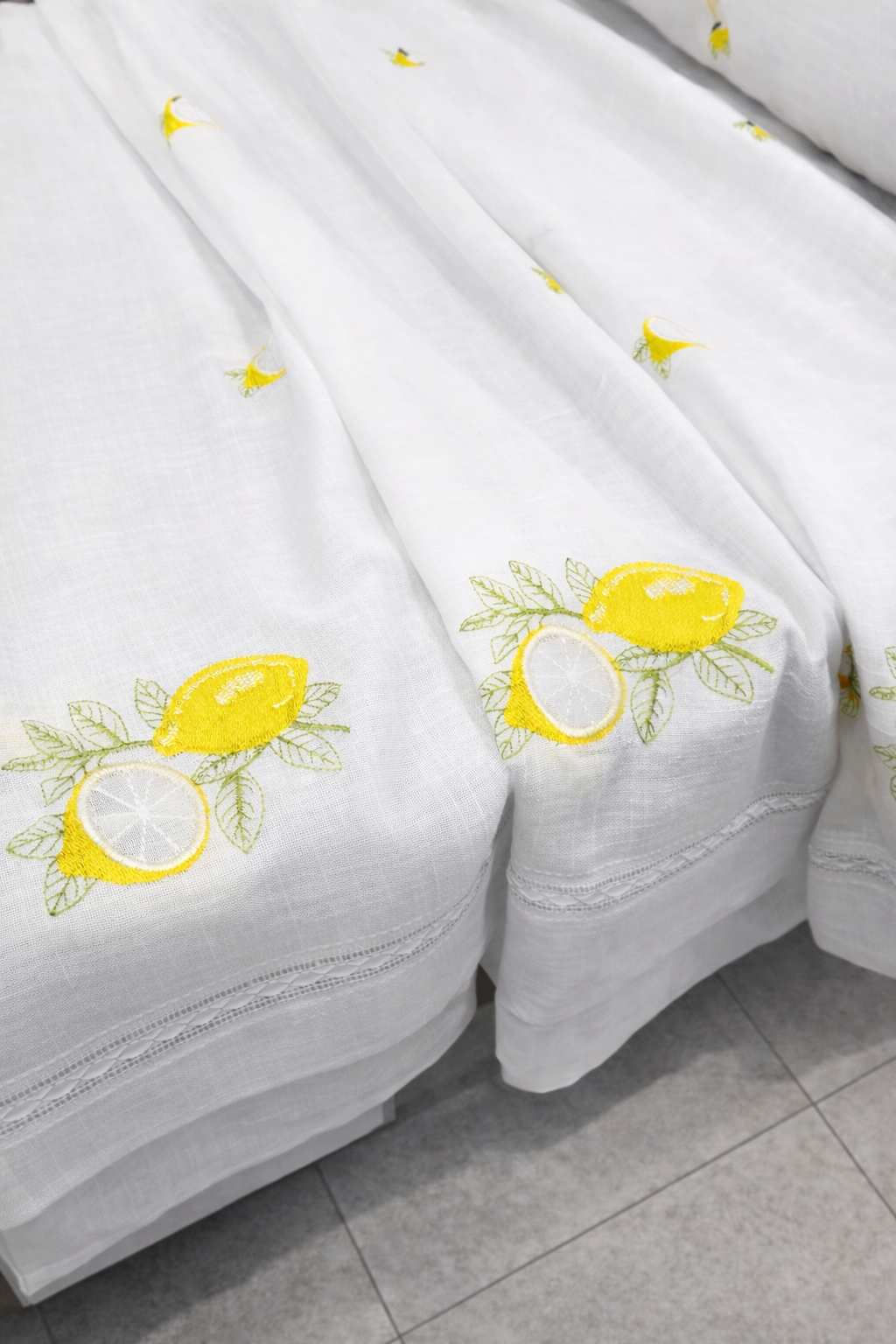 Tela de poliéster 100% con una caída y un tacto exquisito con una altura de 280cm. Con estampación arriba y abajo, ideal para aprovechar el tejido, dando opción a dos ventanas cortas o volante y puerta.