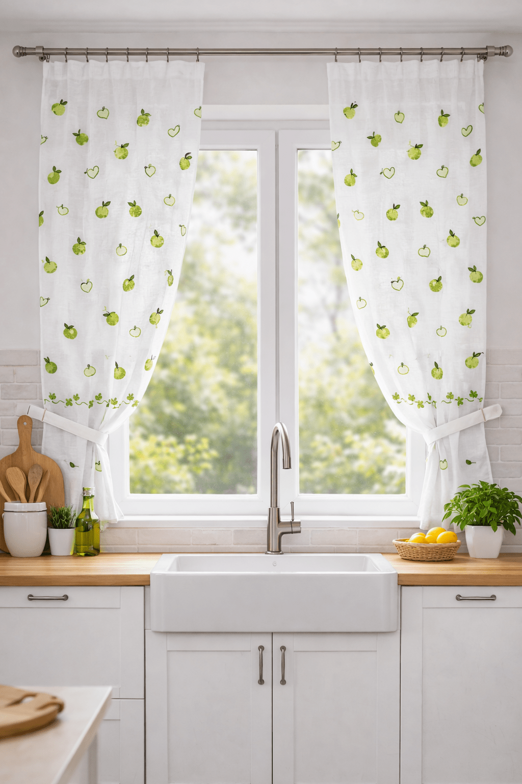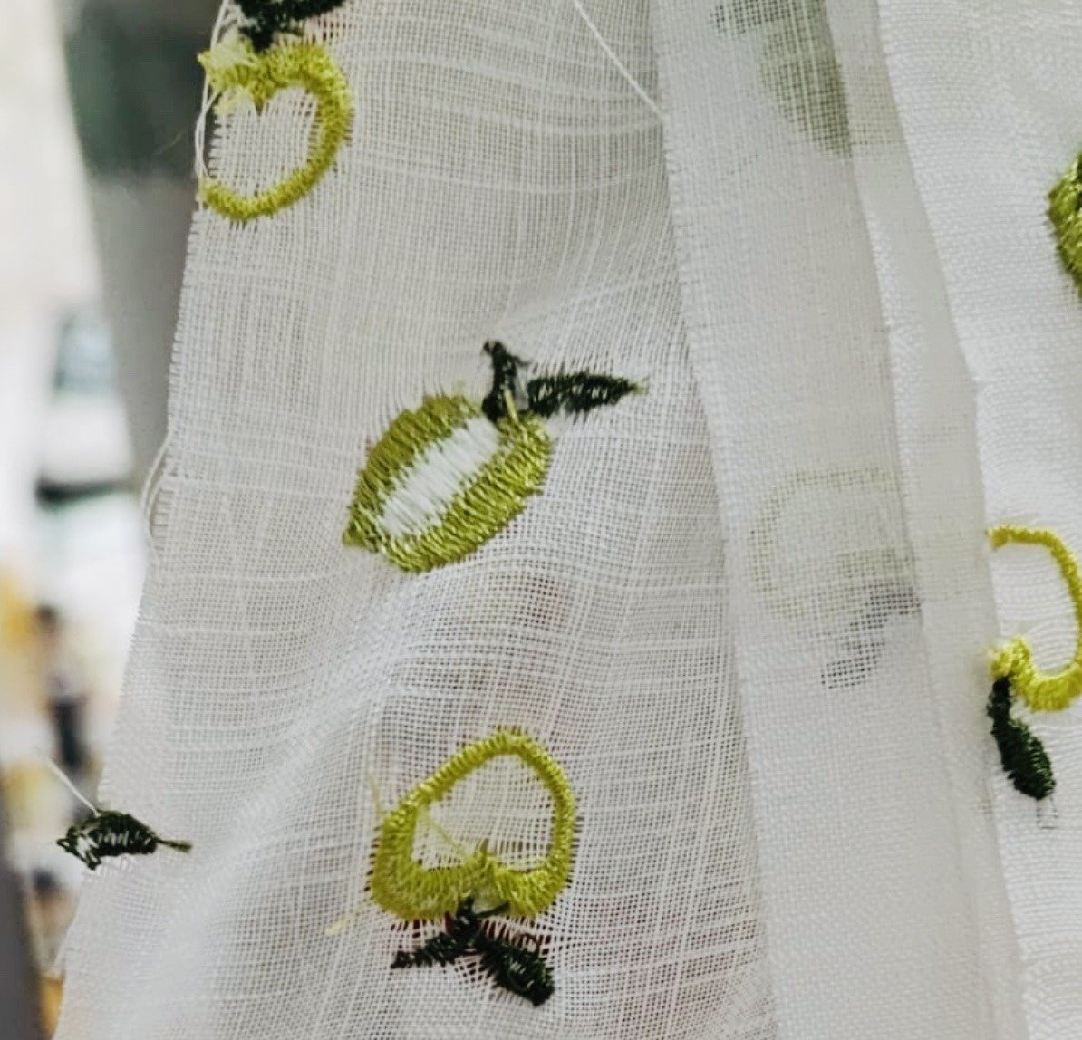 Tela de poliéster 100% con una caída y un tacto exquisito con una altura de 280cm. Con estampación arriba y abajo, ideal para aprovechar el tejido, dando opción a dos ventanas cortas o volante y puerta.
