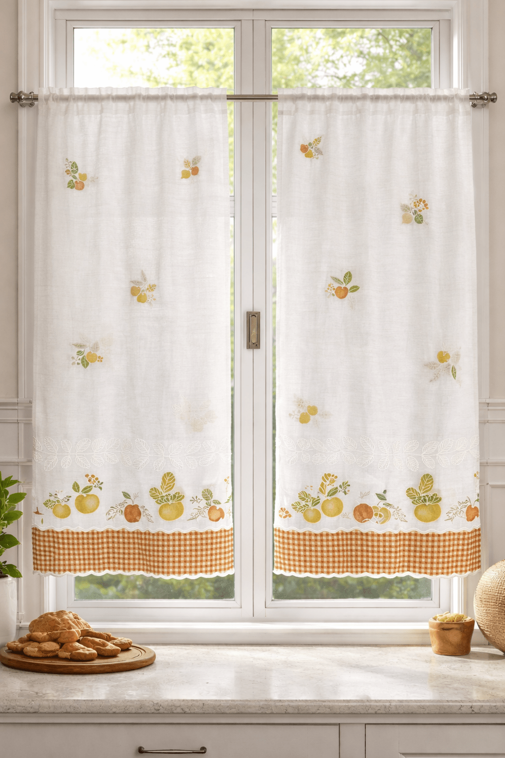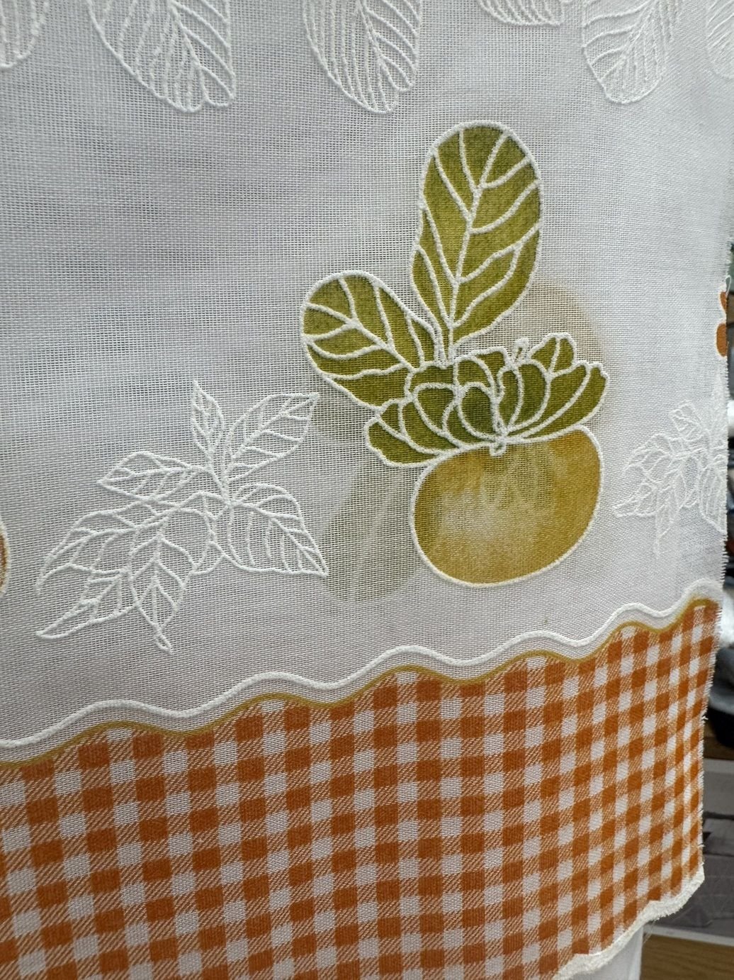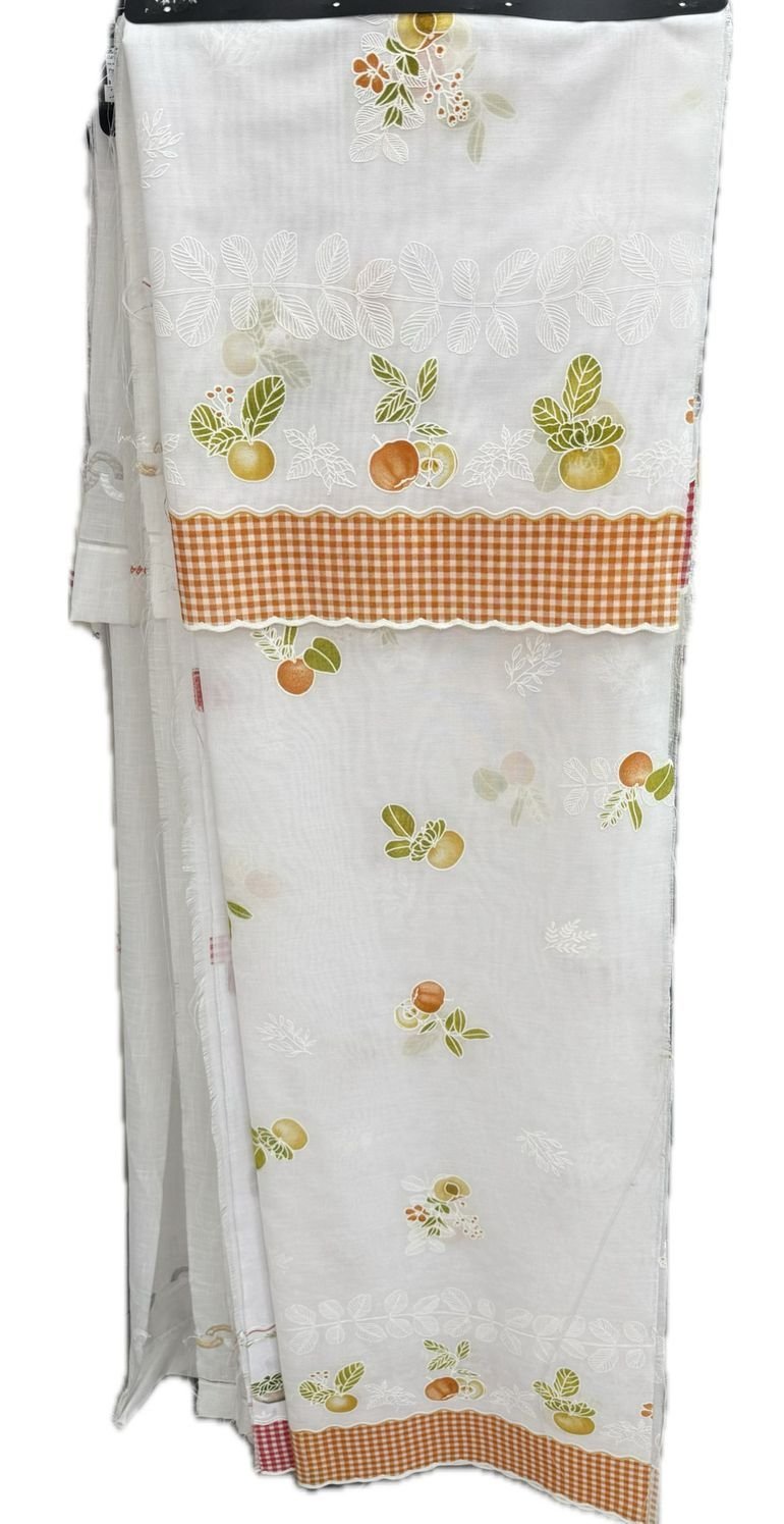 Tela de poliéster 100% con una caída y un tacto exquisito con una altura de 280cm. Con estampación arriba y abajo, ideal para aprovechar el tejido, dando opción a dos ventanas cortas o volante y puerta.