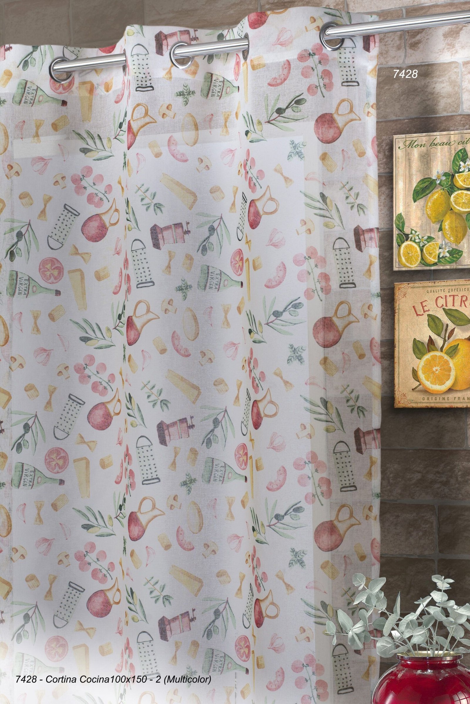 Visillo cocina de Ideal Selección modelo 7428. Visillo decorativo para ventana con estampado de colores muy alegre.