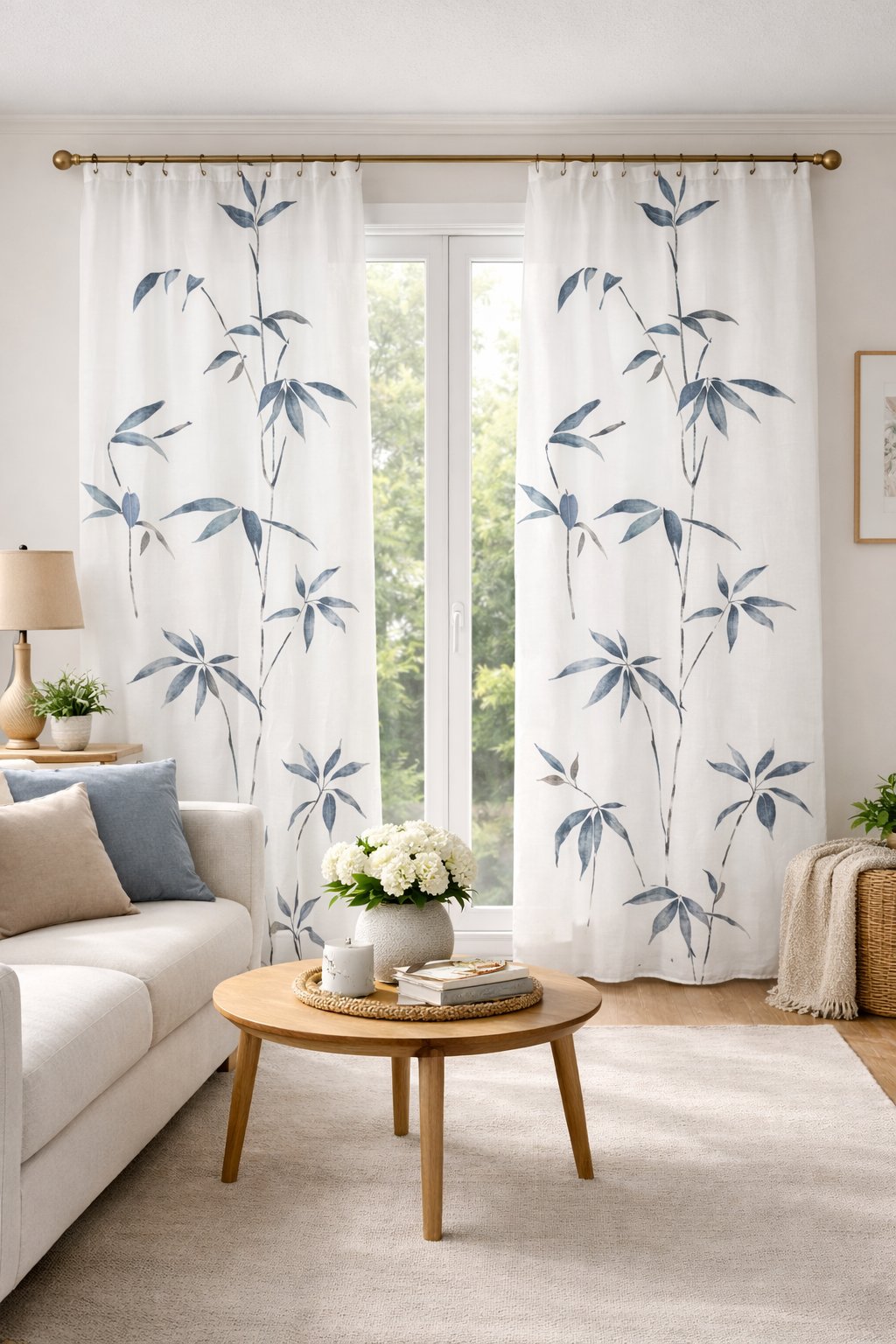 Visillo Hojas Bambú Azul