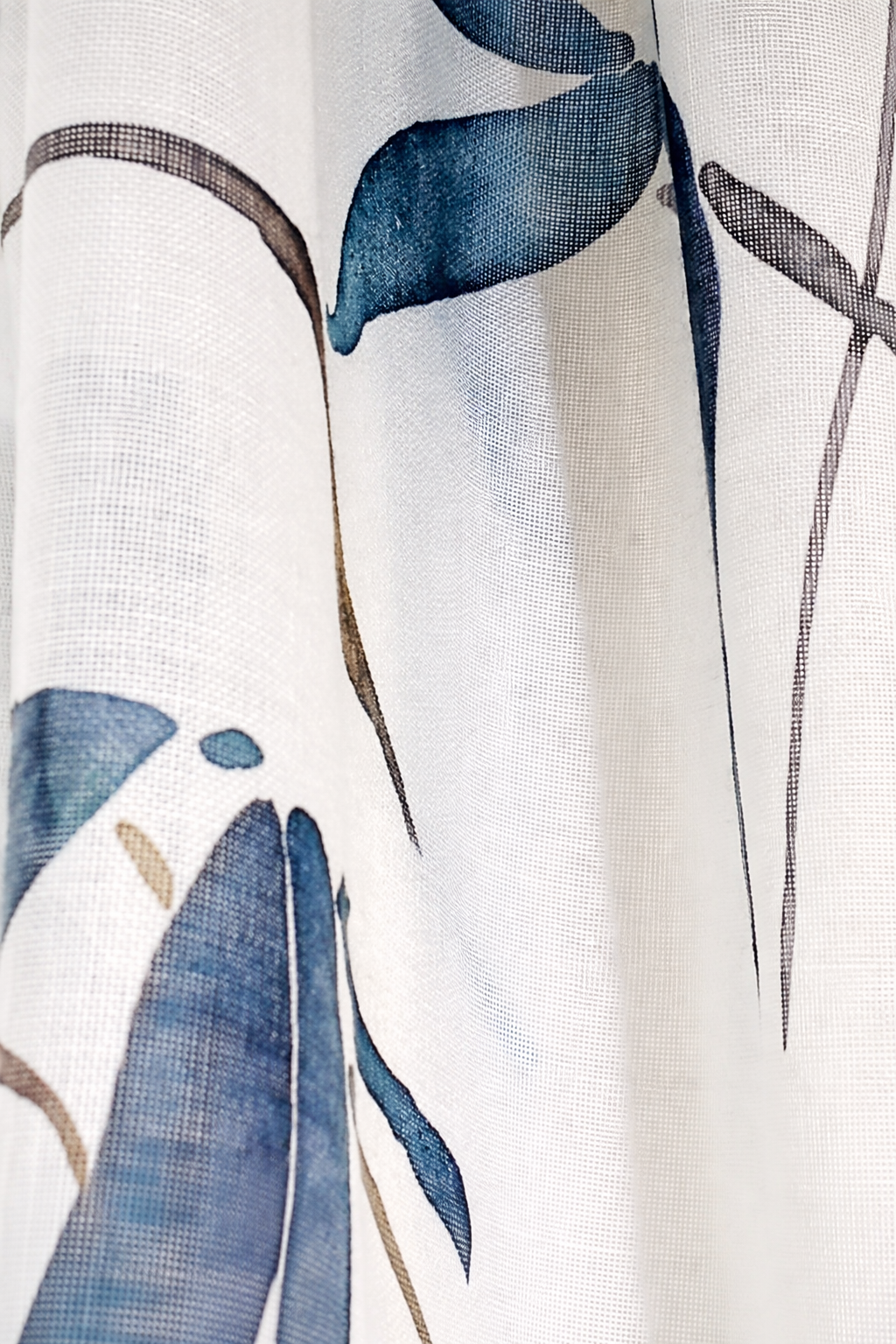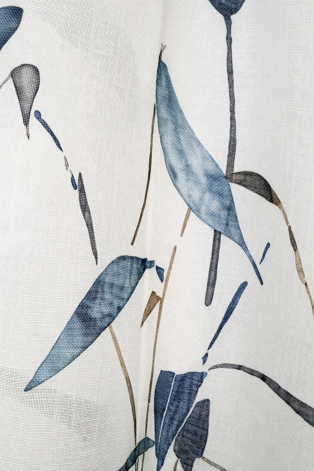 Tela de visillo a metros modelo Bambú con un estampado en tonos tostados, azules y natural. Tela de poliéster y lino con una caída y un tacto exquisito con una altura de 300cm. Es una tela de visillo translúcida con buena caída para confección de cortinas. No encoje y puedes lavarla a máquina a 30º con un centrifugado suave. La tela ya viene acabada en uno de los orillos del ancho con un cordón de plomo, que sirve de peso, listo para utilizar como final del bajo de tus visillos. para decoraciones de Hogar.