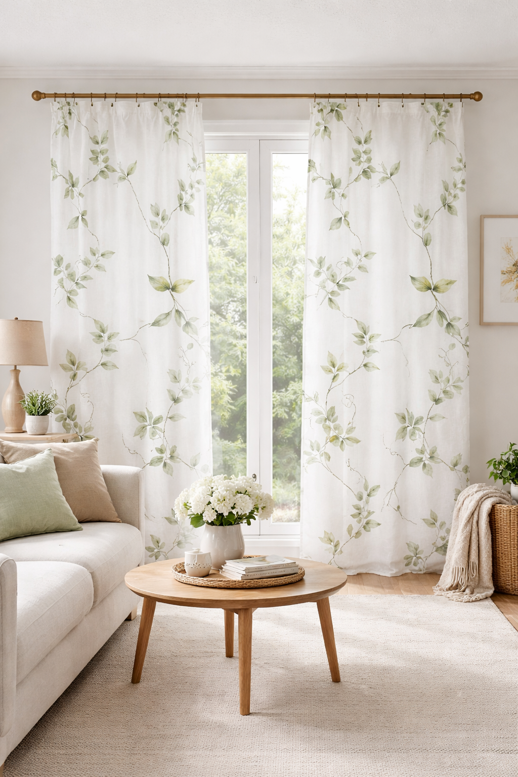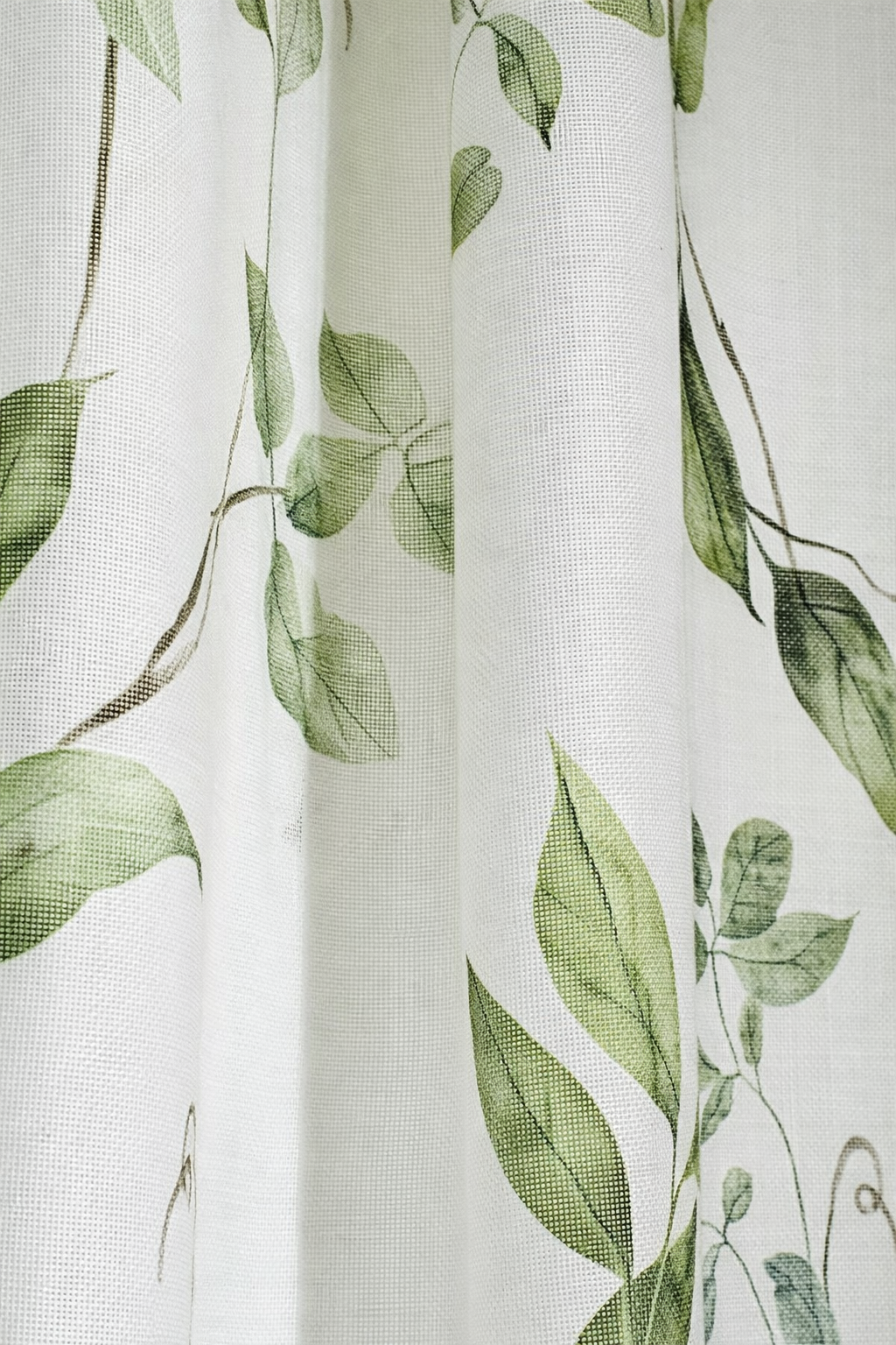 Tela de visillo a metros modelo hojas con un estampado en tonos tostados, verdes y natural. Tela de poliéster y lino con una caída y un tacto exquisito con una altura de 300cm. Es una tela de visillo translúcida con buena caída para confección de cortinas. No encoje y puedes lavarla a máquina a 30º con un centrifugado suave. La tela ya viene acabada en uno de los orillos del ancho con un cordón de plomo, que sirve de peso, listo para utilizar como final del bajo de tus visillos. para decoraciones de Hogar.