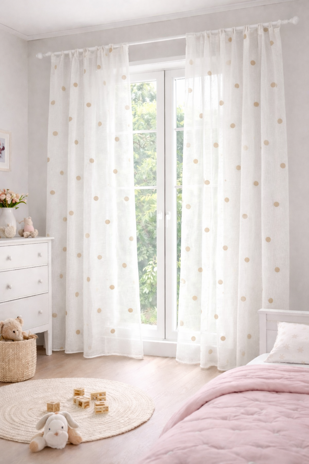 Visillo Infantil Lunares Bordados Beige