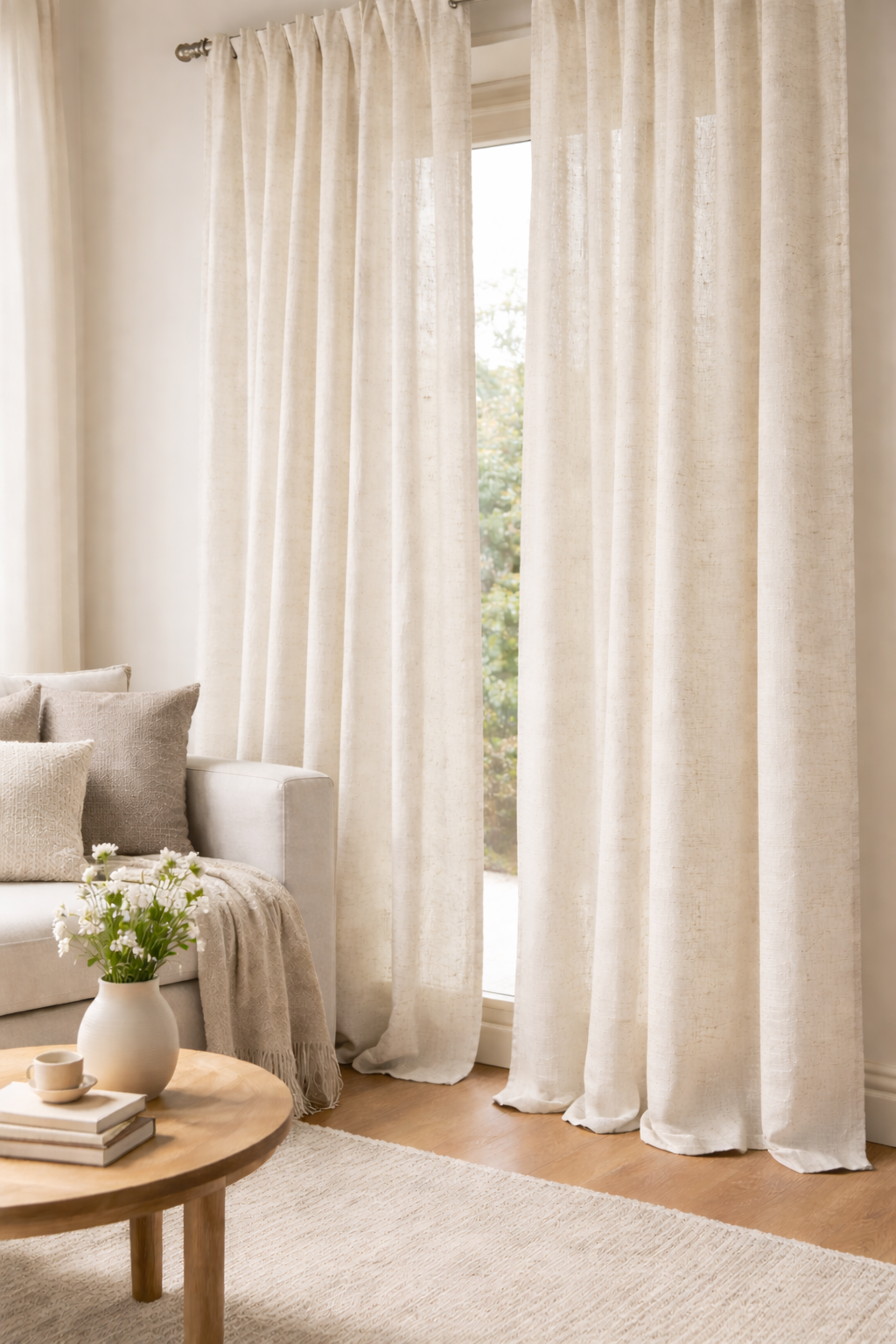 Tela de visillo a metros modelo clásico con un estampado liso en tono blanco natural. Tela de poliéster con una caída y un tacto exquisito con una altura de 290 cm. Es una tela de visillo translúcida con buena caída para confección de cortinas. No encoje y puedes lavarla a máquina a 30º con un centrifugado suave. La tela ya viene acabada en uno de los orillos del ancho con un cordón de plomo, que sirve de peso, listo para utilizar como final del bajo de tus visillos, para decoraciones de hogar.
