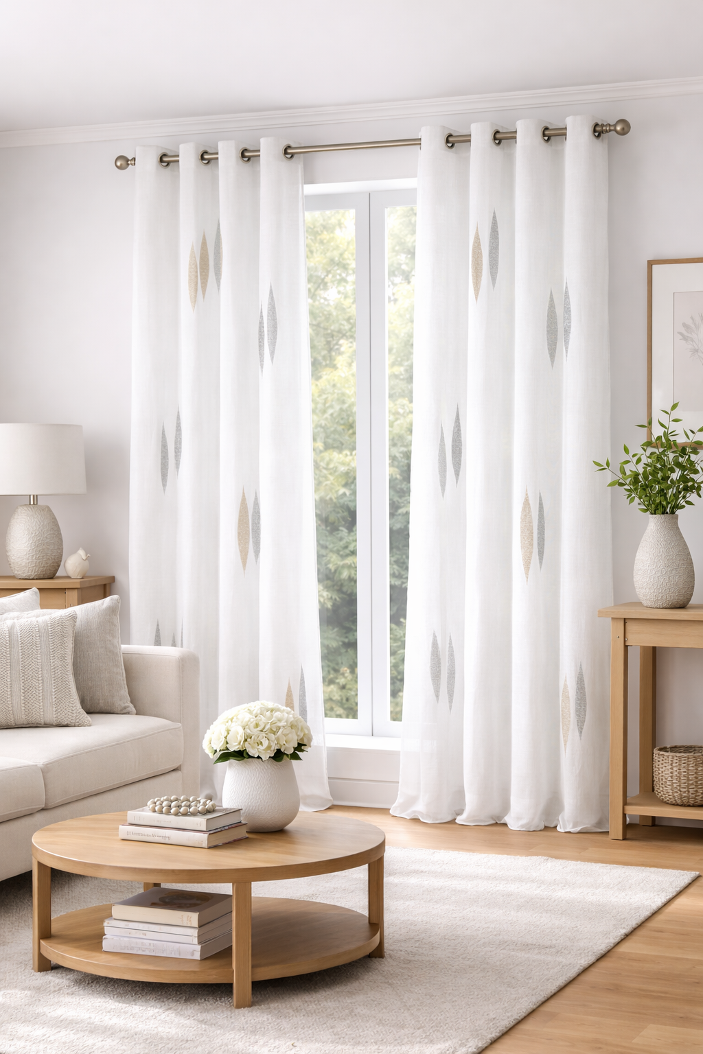 Tela de visillo a metros modelo clásico con un estampado jacquard en tonos blancos a grises. Tela de poliéster con una caída y un tacto exquisito con una altura de 300 cm. Es una tela de visillo translúcida con buena caída para confección de cortinas. No encoje y puedes lavarla a máquina a 30º con un centrifugado suave. La tela ya viene acabada en uno de los orillos del ancho con un cordón de plomo, que sirve de peso, listo para utilizar como final del bajo de tus visillos, para decoraciones de hogar.