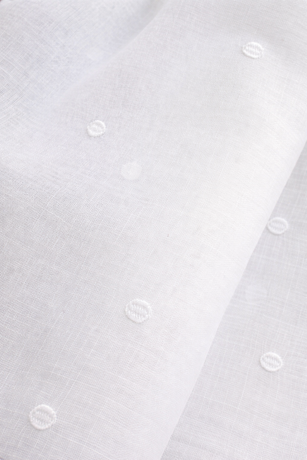 Tela de visillo a metros modelo bordado puntos es una propuesta elegante y contemporánea que aporta luz, textura y sofisticación a cualquier estancia. Su delicado diseño con lunares bordados, genera un efecto visual sutil y moderno sin restar luminosidad al espacio. No encoje y puedes lavarla a máquina a 30º con un centrifugado suave. La tela ya viene acabada en uno de los orillos del ancho con un cordón de plomo, que sirve de peso, listo para utilizar como final del bajo de tus visillos, para decoraciones de hogar.