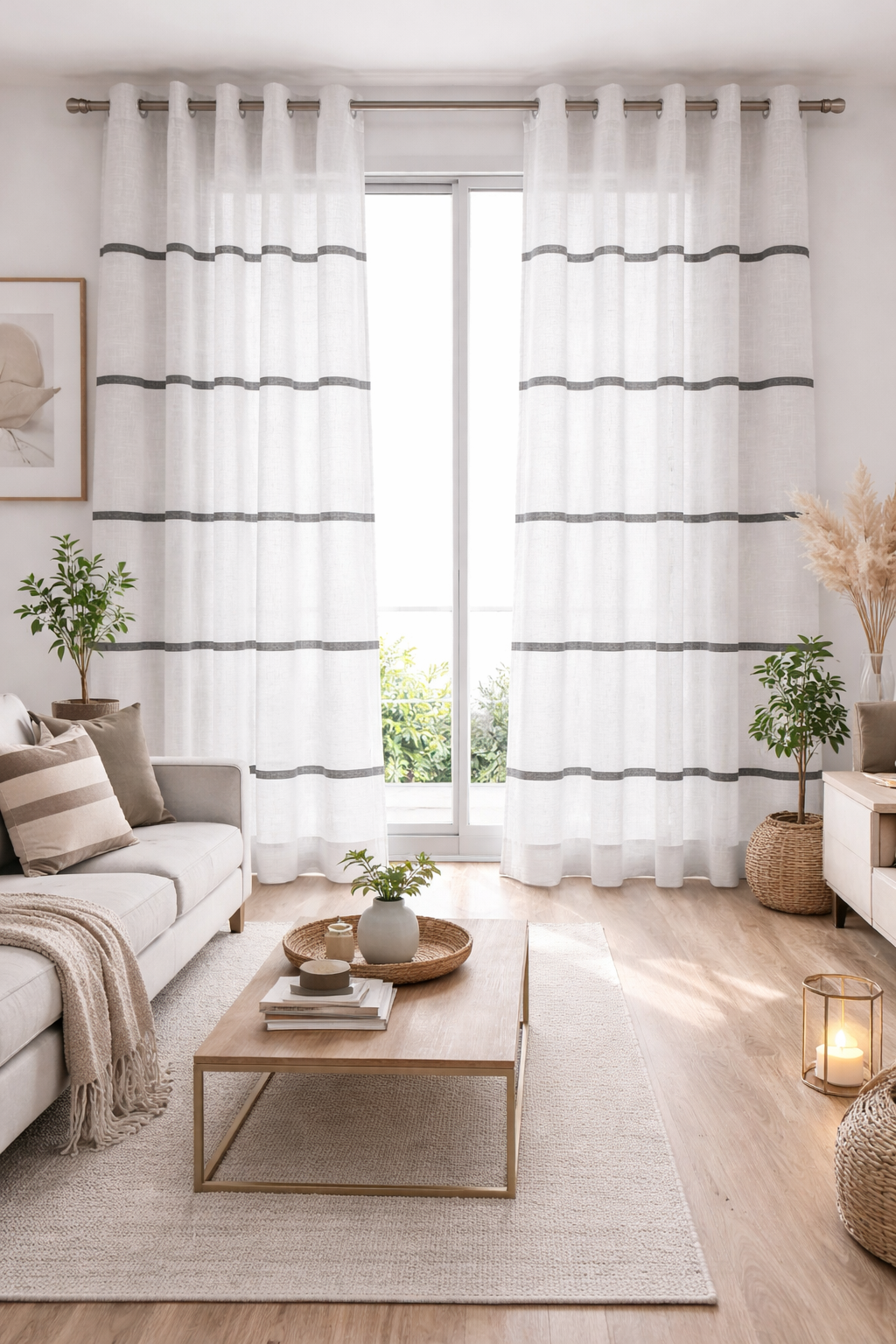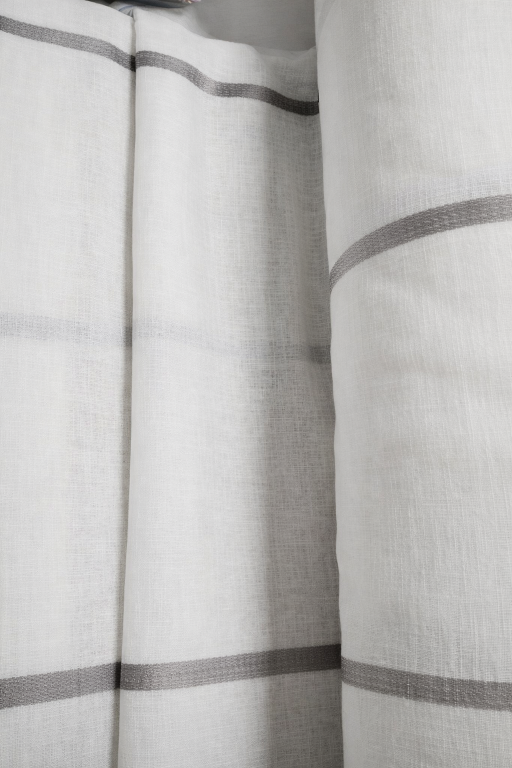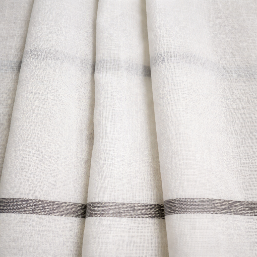 Tela de visillo a metros modelo Hamburgo clásico con un estampado con cenefa en tonos grises, posición separada de las cenefas a 40 cm. Tela de poliéster con una caída y un tacto exquisito con una altura de 300 cm. Es una tela de visillo translúcida con buena caída para confección de cortinas. No encoje y puedes lavarla a máquina a 30º con un centrifugado suave. La tela ya viene acabada en uno de los orillos del ancho con un cordón de plomo, que sirve de peso, listo para utilizar como final del bajo de tus visillos, para decoraciones de hogar.