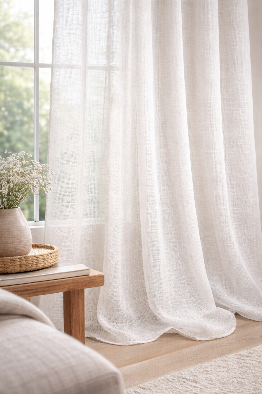 Tela de visillo a metros modelo clásico con un estampado liso en tono blanco natural. Tela de poliéster con una caída y un tacto exquisito con una altura de 300 cm. Es una tela de visillo translúcida con buena caída para confección de cortinas. No encoje y puedes lavarla a máquina a 30º con un centrifugado suave. La tela ya viene acabada en uno de los orillos del ancho con un cordón de plomo, que sirve de peso, listo para utilizar como final del bajo de tus visillos, para decoraciones de hogar.