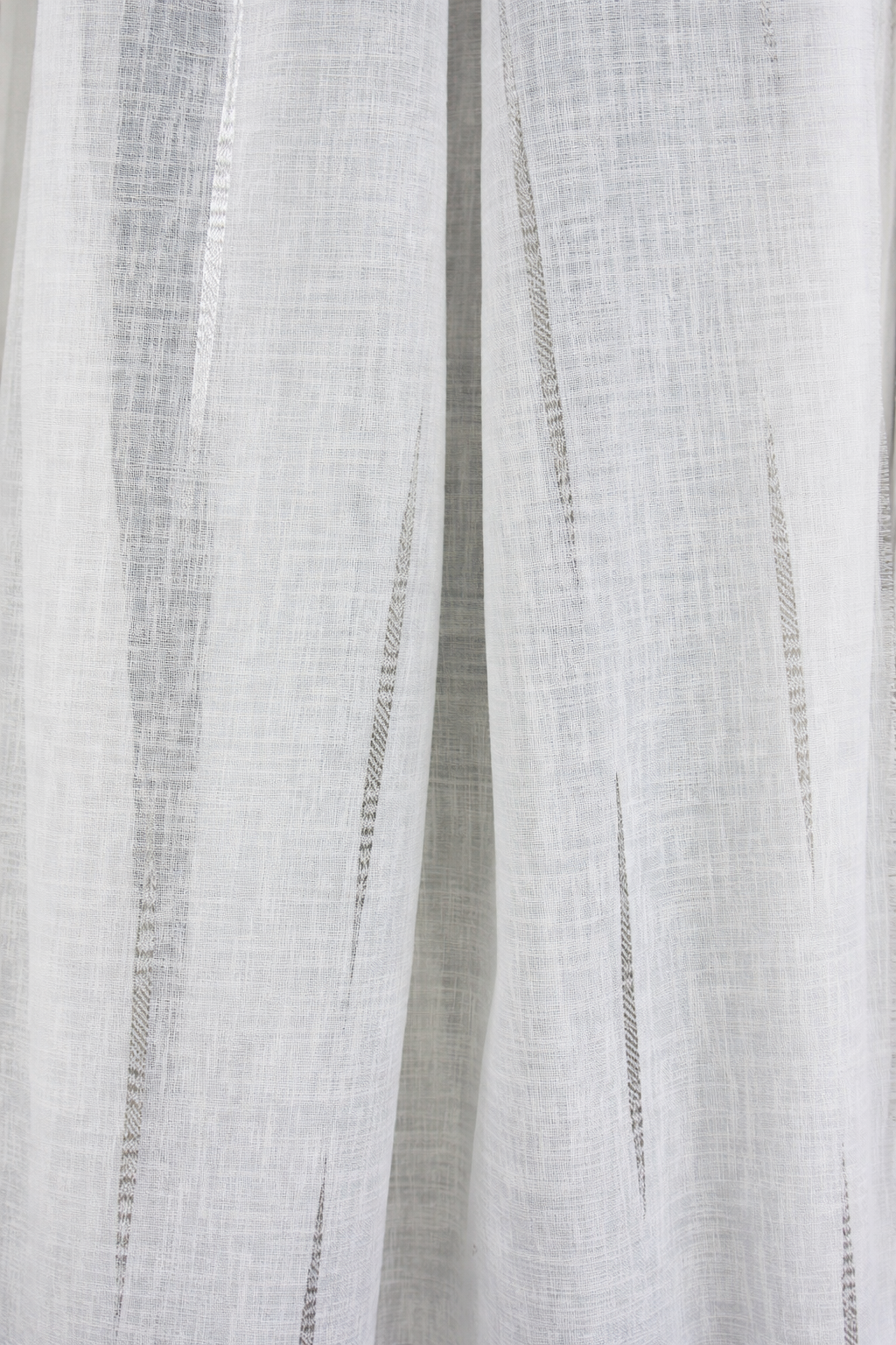 Tela de visillo a metros modelo X clásico con un estampado con cenefa en tonos grises, posición separada de las cenefas a 40 cm. Tela de poliéster con una caída y un tacto exquisito con una altura de 280 cm. Es una tela de visillo translúcida con buena caída para confección de cortinas. No encoje y puedes lavarla a máquina a 30º con un centrifugado suave. La tela ya viene acabada en uno de los orillos del ancho con un cordón de plomo, que sirve de peso, listo para utilizar como final del bajo de tus visillos, para decoraciones de hogar.