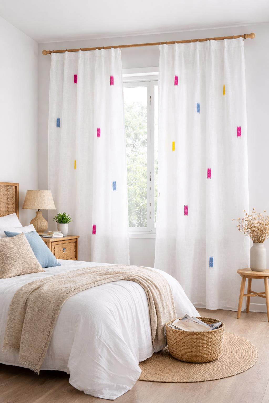 El visillo Zulu es una pieza ligera y luminosa que aporta frescura y personalidad a cualquier espacio. Confeccionado en un tejido semitransparente de efecto lino, destaca por su textura natural y su caída suave, que tamiza la luz creando ambientes cálidos y acogedores. No encoje y puedes lavarla a máquina a 30º con un centrifugado suave. La tela ya viene acabada en uno de los orillos del ancho con un cordón de plomo, que sirve de peso, listo para utilizar como final del bajo de tus visillos, para decoraciones de hogar.