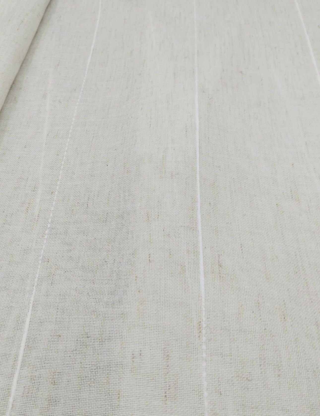Tela de visillo a metros modelo Nador c/02 jaspeado de color blanco y tostado . Tela de poliéster 100% con una caída y un tacto exquisito con una altura de 300cm. Es una tela de visillo translúcida con buena caída para confección de cortinas. No encoje y puedes lavarla a máquina a 30º con un centrifugado suave. Bajo con plomo que hace de peso.